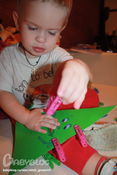 А больше всего Мишуткин смеялся, когда я к нему стала прищепки прицеплять, а он отдирал их!