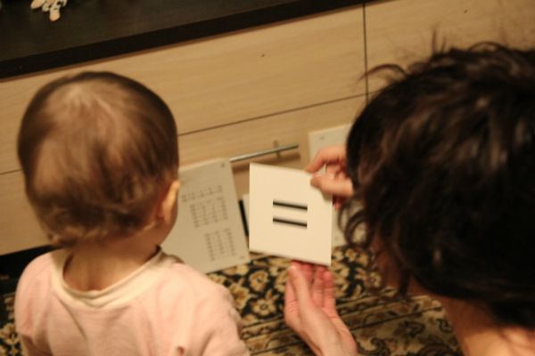 Перед показом равенств решила повторить с ней знаки. Верок вникала основательно)))