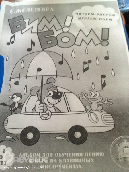 Он наконец-то появился в Лабиринте. Я в свое время его скачала и распечатала, и тот и другой в черно-белом варианте, в любом случае. Альбом хорош тем, что маме можно вообще не знать музыку. Все нотки на клавишах рекомендуется подписать. В книге есть даже разворот с маленькими наклейками. Все мелодии очень просты и вы без труда их освоите вместе с малышом. Мой сын очень любит эти песенки, сам достает пианино, потом бежит за альбомом.