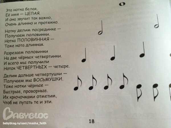 Главная ее особенность там все в стихах. Очень понятно,подробно и весело. Про ноты, про знаки, про размер. В общем все-все-все музыкальные термины. Несколько сложнее чем "Бим Бом", тем не менее я не имея музыкального образования все поняла:)