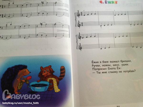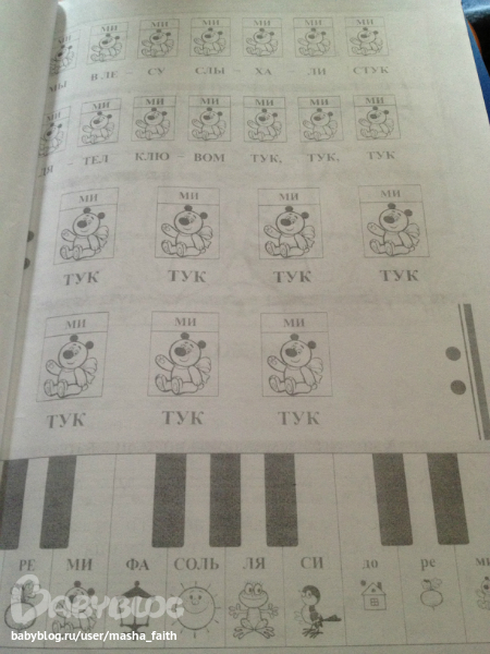 Эта книга самая сложная из трех. На мой взгляд. Или для мам имеющих музыкальное образование или умеющих играть на каком-либо инструменте. Мы пока осваиваем первые две. До этой еще не добрались. Несколько разворотов прилагается.