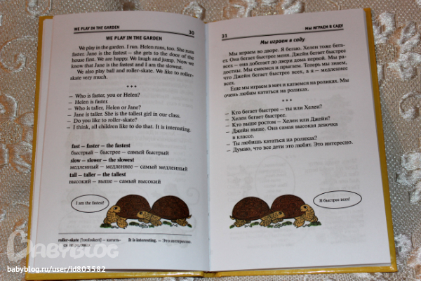 ПолиглотыЯ сама изучала, да и что греха таить, продолжаю изучать английский язык. Слышу множество противоречивых мне ний по поводу необходимости изучения иностранных языков с пеленок. Я решила - изучению быть! Ни в коем случае не навязываю ребенку, ибо это бесполезно абсолютно в нашем случае. Выбрала методику изучения следующую: я сама многократно в течении дня повторяю фразы, относящиеся к совершаемым на данный момент действиям, четко и ясно произношу слова и выражения на русском и английском языках, перемежая их между собой. Муж сначала ехидно хихикал, теперь привык, даже иногда уточняет что именно я говорю...))) Пока доченька рассматривает книжки, я комментирую и на русском и на английском, она уже повторяет простые английские слова за мной.