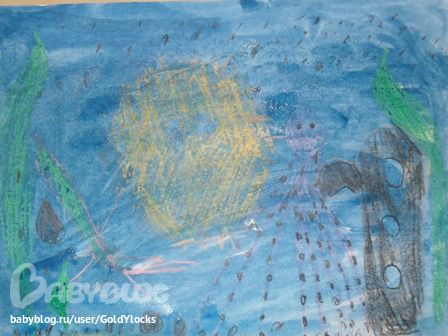 Разное (если затрудняетесь с выбором)Занятия у нас чаще всего начинаются спонтанно. Сын предложил посмотреть двд "". Сегодня выбор пал на тему "Под водой". Затем пошло сравнение с карточками "", и, наконец, все завершилось творчеством - рисовали мелками морских обитателей, а акварелью создали море (Это задание из комплекта "").