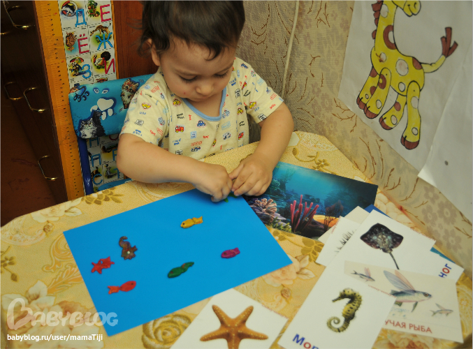 Потом нашли морского конька и морских звездочек, сравнили их с нашими карточками Домана и тоже наклеивали.