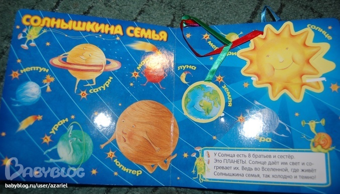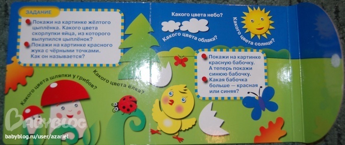 Ребенку нравится вставлять солнышко, облачко и землю в ячейки. Картон не очень плотный и в некоторые кармашки солнце и другие предметы залезают с трудом, к тому же ребенку нужно полностью засунуть предмен, а кармашки расчитаны только на частичное погружение =)