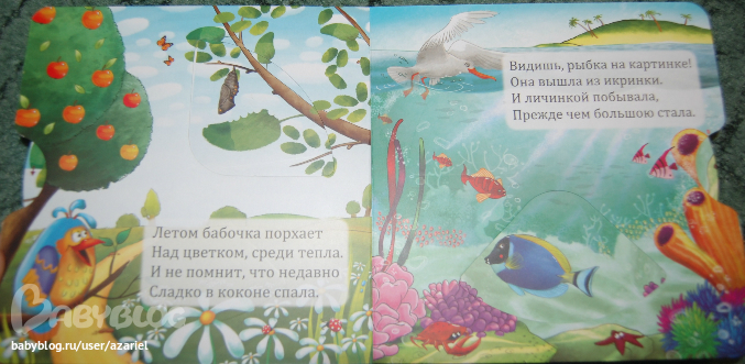 В первые пол года содержание книги не так важно, как эмоциональность с которой читает книгу мама, если вам самим книга не нравится лучше отложить на потом или отдать. Яркие картинки и плотные страницы важны уже ближе к 6мес. Это очень интересный период. После рождения мы читали классику “Евгений Онегин” (мне самой это произведение очень нравится), “Алые паруса” и Басни. А когда пришел период рассматривания (около 3мес.), читали следующие: (Книги для изучения животных описаны тут.)