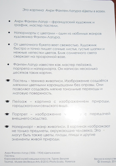Не скажу, что я по каждой картине беседу веду, но если спрашивает, то обязательно рассказываю. Ему очень нравится их рассматривать и делать творческие задания.