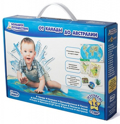 1. Большое путешествие. От Канады до Австралии. Чемоданчик от Умницы с развивающими карточками и играми для маленького исследователя.