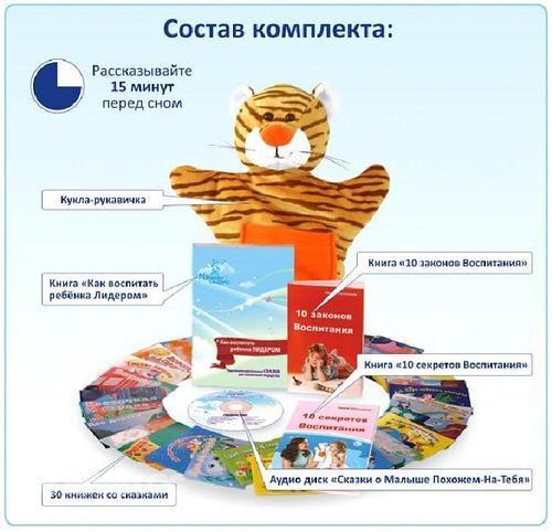 4. Ваш ребенок - Лидер (с игрушкой). Комплект для воспитания характера. . Идея супер, но сказки которые входят в комплект меня чесное слово шокируют. Только немногие могу читать без изменений, остальные использую как базу, а сюжет придумываю сама. Ребенок очень классно относится к кукле перчатке, ее слушается больше, чем меня.