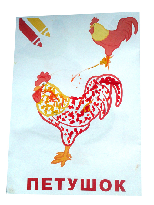 Петушка раскрашивали ватными палочками, тоже очень понравилось!