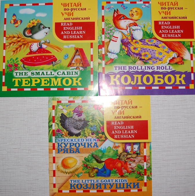 7. Читай по-русски - учи английский. Теремок; Курочка Ряба и Козлятушки и Колобок.