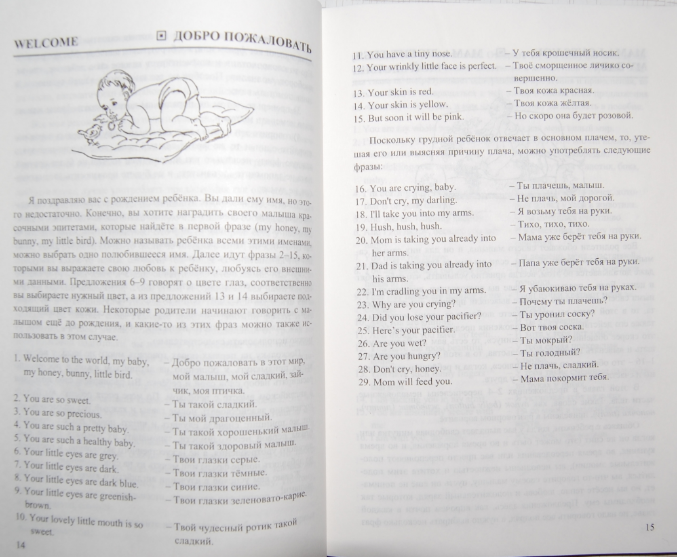 Книга без цветных картинок, но это пособие для мамы. На CD грамотное произношение. Приведены примеры фраз на каждый день.