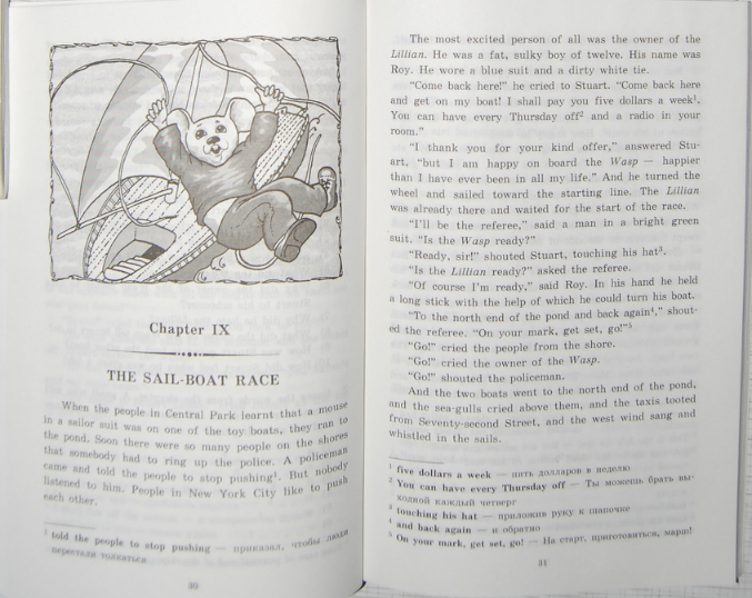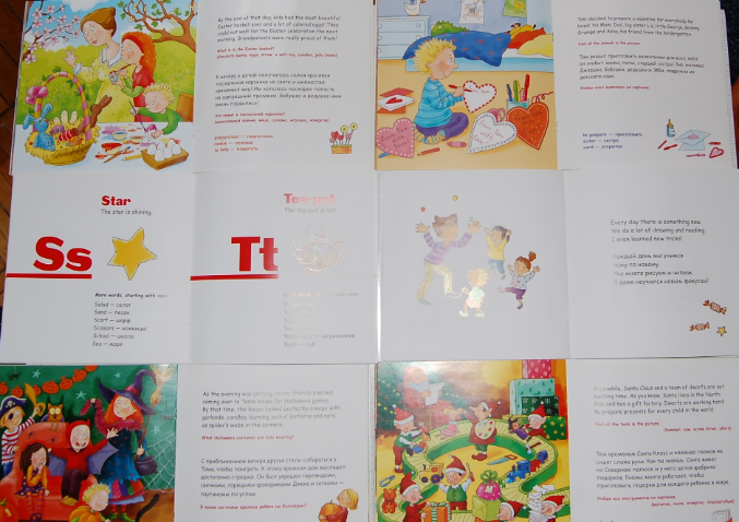 Очень интересная серия. Полного перевода текста с английского на русский нет, зато, рядом с текстом переведены часть слов. Мне кстати такой формат подачи материала очень нравится, но странички не очень плотные, для маленьких детей не подойдёт.