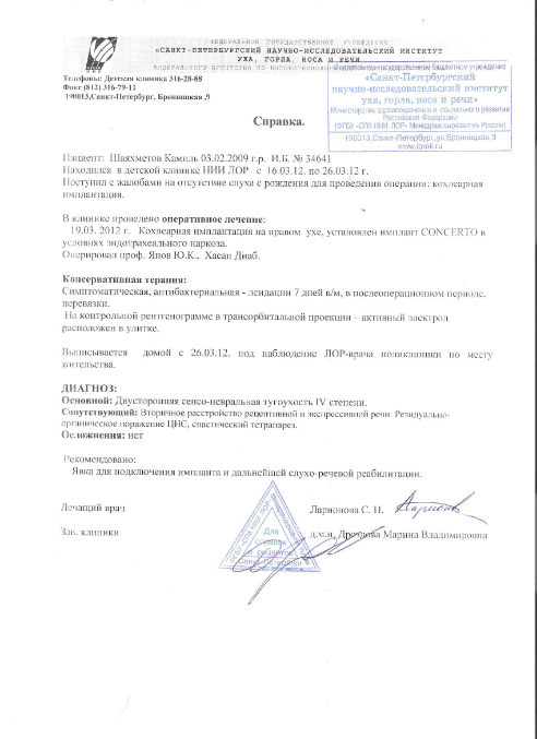 19 марта 2012 году Камиля прооперировали в г. Спб "Лорнии ухо, горло и носа" по ул. Бронницкая 9, вот тут я писала пост http://www.babyblog.ru/community/post/netakoi/1694674 , тут про первое подключение 12 апреля 2012 г. http://www.babyblog.ru/community/post/netakoi/1695215
