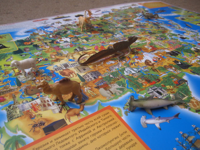 нам нравились картинки из серии мир на ладошке и на каждую картинку выставлять игрушки или фигурки животных. (на фото животные на атласе мира). нравилось и до сих пор нравится возиться в рисе. копать выкапыать опять мелочевку разную (из киндеров, зверешек, цветные макароны, фасоль и т.д.).