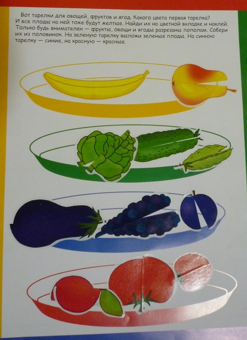 "Цветные картинки". По силуэту угадываем что изображено,ищем нужную наклейку и озвучиваем цвет.(розовый,красный,оранжевый,голубой,фиолетовый,желтый,зеленый,черный)