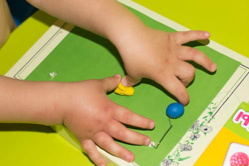 Так как кнопки - это наше любимое, Темочка сразу принялся вытаскивать их и снова, попадая в отверстия вставлять...а то, что нужно было изобразить паутинку для паучка - ему было до лампочки))) он конечно покрутил нитку...так да эдак...но ничего не вышло и занялся другим делом...