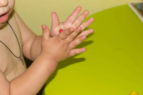 Занятие пошло на ура, результатом я довольна, а именно: Тёмка распробовал клубнику!!! Никогда не думала, что клубника может не нравится...а тут первый урожай с дачи...вкусная, крупная, так и тянется в рот, а Тёмка отказывался от нее, даже если она и попадала ему в рот, то тут же вываливалсь обратно...