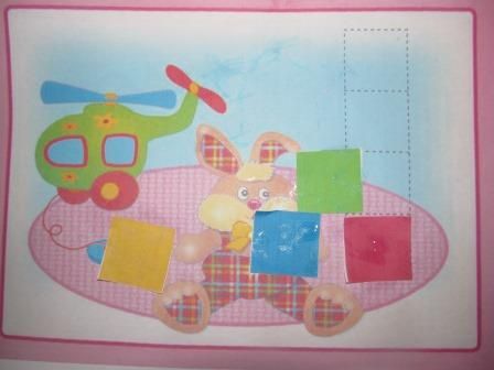 аппликацию взяли на тему геометрических фигур. нужно было сделать башню из кубиков. Ну я не настаивала прям башню. Как смогла так и прилепила она! Заняло все это минут 5 не больше. Больше испачкались))))