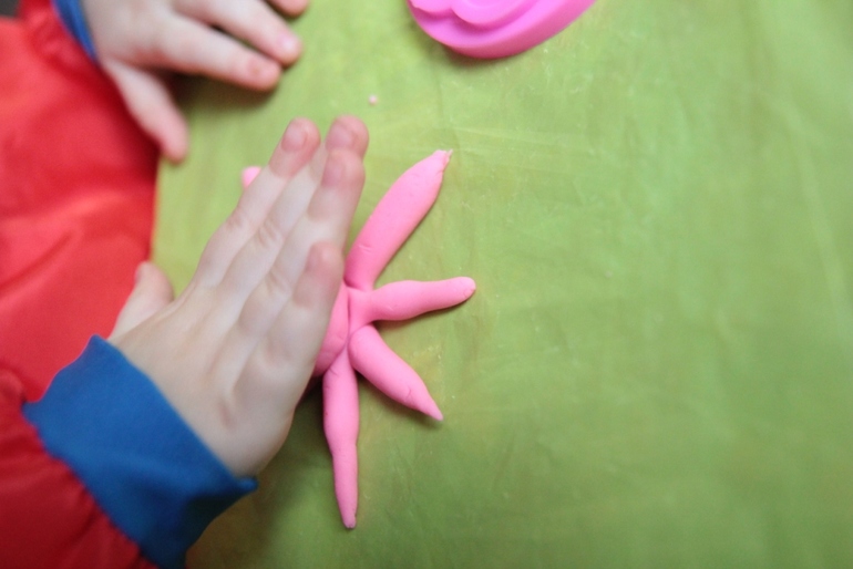 3.Скатайте колбаски – щупальца, и шарик – голову. Соедините конечности «снежинкой», а сверху присоедините голову. Ваш осьминог готов!