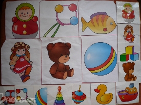 4."Мои любимые игрушки" С помощью этой книги ребенок научиться узнавать что изображено на картинке,познакомиться с такими понятиями как "большой" "маленький",научиться находить похожий предмет.Книга хороша для развития мышления и речи ребенка.Сначала мы просто книгу рассматривали, на вопрос "где?" учились показывать пальчиком.Затем я решила сделать из книги настольную игру. Вырезала картинки (они крупные)и воспользовалась вкладкой ,в которой были даны на плотном картоне картинки с теми же изображениями что и в книге,только маленькие. Игры :найти такую же картинку,подобрать к большой игрушке- маленькую,найти все маленькие\все большие игрушки.