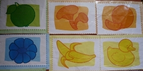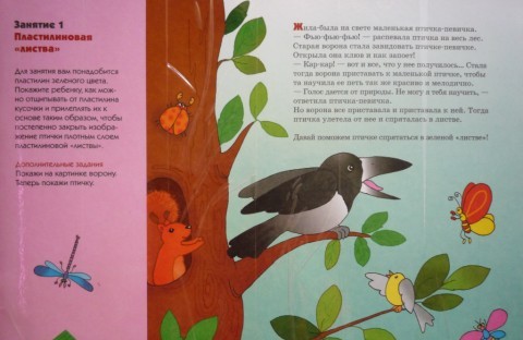 "Бумажные аппликации" все также как и в предыдущем альбоме,заготовки вырезает взрослый ,а ребенок клеит рыбок в аквариум, птичек прилетевших поклевать горох и т.д.