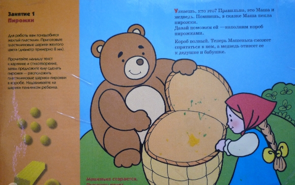 "Моя первая книжка" По этой книге начали заниматься после 10 месяцев.Крупные картинки,узнаваемы,никаких лишних деталей. Пособие предназначено для развитии речи и мышления ребенка. Стимулирует к подражательным действиям.Знакомит малыша с более сложными глаголами .На родительской страничке даны рекомендации по развитию речи ребенка первого года жизни и по месяцам расписаны темпы развития .Имеется картонная вкладка с маской медведя.