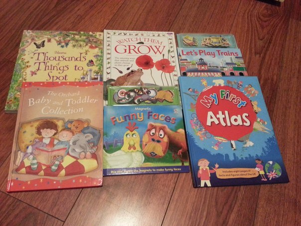 Нас из этого пока что немного интересует Five Little Monkeys, потому что по знакомой песенке. На днях посмотрела пол книжки про Спота) Хочу купить Everywhere Babies.Еще тоже хотела отметить что окошки в книжке про Спота на честном слове держатся.