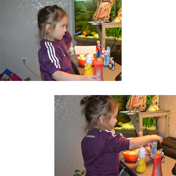 На самом деле мы так частенько делаем. Настя не очень любит рассказывать мне сказки, а вот если ее слушают зрители, которых она же сама и рассаживает, то это другое дело.