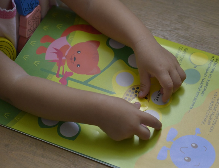 Приклеивала любимые наклейки-кружочки) на этом - баловалась и клеила туда, куда ей хотелось))