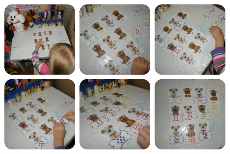 счет, каждой собачке нужно дать свою кость! на косточке сосчитать кружочки нужно!