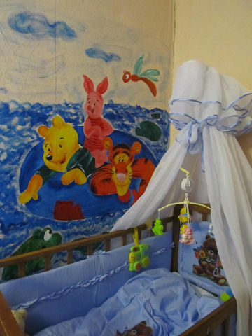 Художественно-эстетическое развитиеПорой смотришь работы мам и радуешься-какие они умнички.Захотелось показать работы мамы Полюшки.Еще до рождения Полины, мама украсила стену у кроватки сюжетом из Диснея.Это теперь любимые герои дочки. Жаль что нельзя передать как это красиво и ярко. Фото с телефона. Затем мама вручную расписала невзрачную коляску дочки и такая была единственной у нас в городе, все обращали на нее внимание. Затем появилась переносная картина из фанеры, это вообще наша радость, кочует с нами везде.Яркий,добрый сюжет да еще картина объемная,Полюшка любит ее трогать.Сейчас мама нарисовала очень много забавных картинок для работы с прищепками,мы их обклеим и покажем позднее.