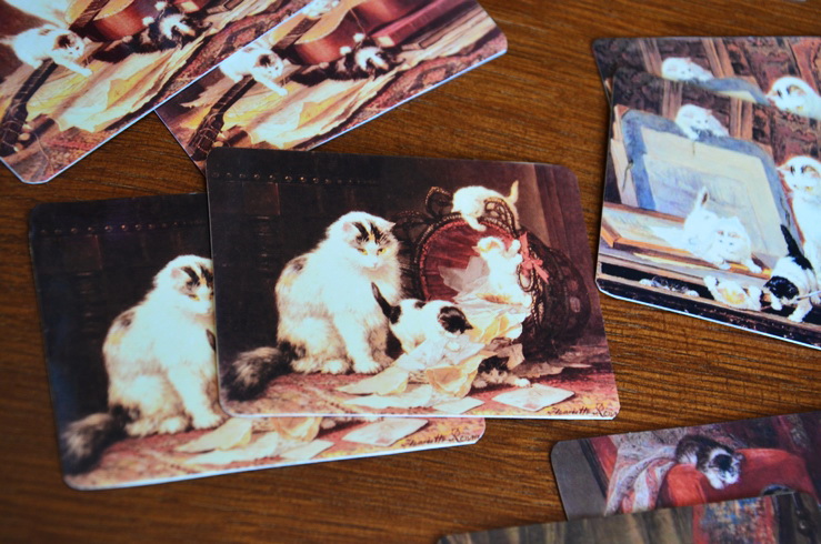 Следует отметить, что занятия с лото и всяческими мемори, поисками пары Насте уже не очень интересны. Именно поэтому каждый раз стараюсь выискивать что-то новое и необычное, что могло бы ее зацепить. Совершенно случайно наткнулась в блоге моей коллеги по блогспоту Елены из Эстонии () на работы одной неизвестной художницы - Henriette Ronner-Knip, которая писала кошек. Мне картины показались интересными, а с учетом того, что Настя просто обожает кошек, решила сделать игру на поиск пары. И не прогадала! Дочка с удовольствием раскладывает карточки, рассматривает их, а потом находит одинаковые, хотя это порой не так-то просто)).