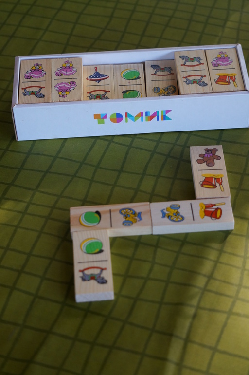 6. Домино Томик - удобные легкие детали, красивые картинки. Пока Маша не играет в него, как надо, а больше раскидывает, собирает, упаковывает.