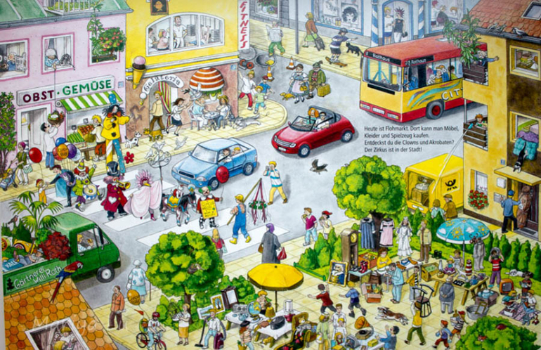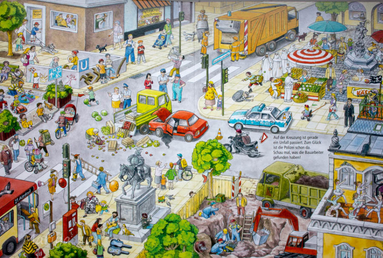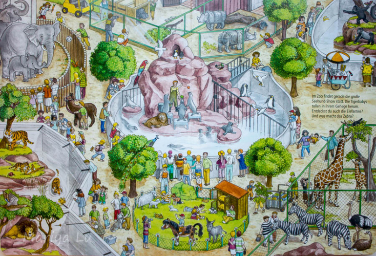 Книги нам дали очень большую разговорную базу. По началу(около 1 и 8) сын просто смотрел,показывал что-то? а я рассказывала. Лbбо только я показывала и рассказывала. Как уже писала,то мне Анна Сьюз нравится именно тем,что на ее страницах происходит много действий они то и увлекают малышей,приглашают в мир книги. К примеру из городской ребенок очень любил разворот у водоема,где мальчика кусает рак. Сколько разговоров побудила эта одна деталь всей картины. Как кусает, чем,почему,мальчику больно? а кто его пожалеет? а он пойдет еще купаться? т.е. книга побуждает на разговор,долгий разговор о простых вещах.
