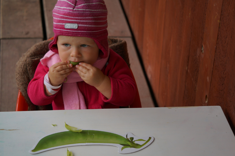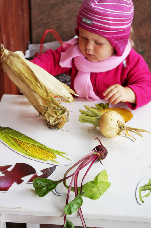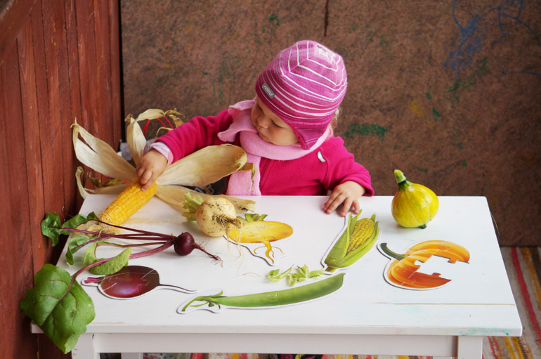 Развитие детей второго года жизниНе так давно Маша стала потихоньку интересоваться пазлами, хотя, конечно, складыванием, это назвать еще нельзя. Мне очень нравится русская серия макси-пазлы. Мы начинали с животных, и теперь на повестке дня овощи, а за окном дачный огород, где все есть живьем. Я заранее набрала нужные мне плоды, уложила в миску, разложила сложенные пазлы (очь их видела впервые). Был такой восторг, что ребенок просил все дегустировать, так что теперь мы знатоки сырой тыквы и свеклы. Волосня от кукурузы - отдельный хит, в репку мы как-то играли,ну а горох мы очень любим таскать с грядки! Такой вот получился натур-продукт!