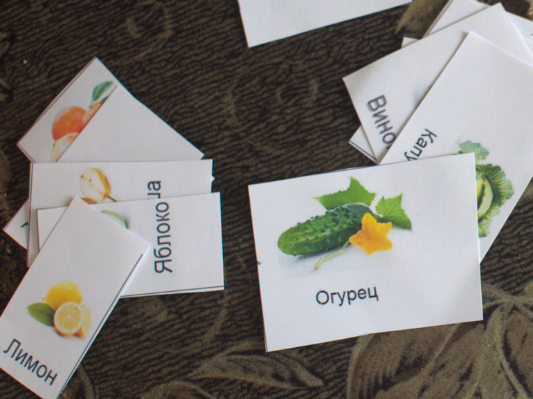 Вспомнили про фрукты в тему. Но вот навскидку Алиса ассоциировала их с овощами, сказала, что они круглые, но сама не назвала ни одного:(( Сортировали