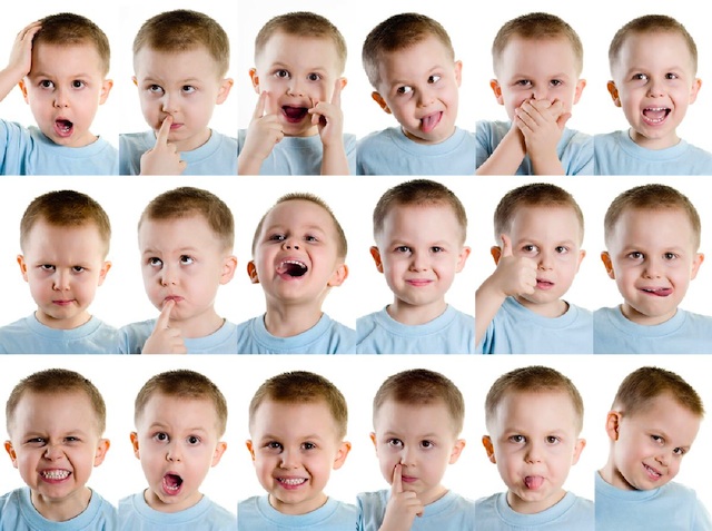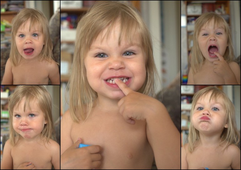 Угадывали эмоции (Алиса только очень ярко выраженные опознала, так просто описывала, что видит и делала так же - "держится за голову"). Еще смешно было - на четвертой слева в верхнем ряду что делает мальчик? "Делает тик-так" (из нашей зарядки для язычка). А следующий? Рот закрыл. Почему? чтобы никто не заглядывал:))