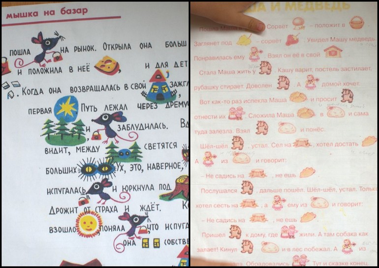 Потом там информация о том, как дети" читают" книжки. Я достала старые распечатка сказок с картинками, рассказывали вместе.
