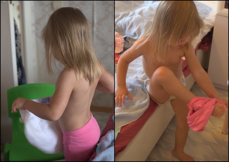 Предложила Алисе самой наряжаться. Правда, тема живого отклика не встретила...У нас постоянный ор при самостоятельном одевании-раздевании: "Помогииии!, заваливание на спину (если на кровати), если хоть немного не получается.