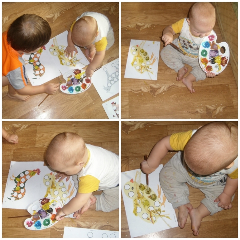 Еще одно любимое дело - рисовать кисточкой! Не знаю почему, может за братом повторяет, но кисточку он любит очень.