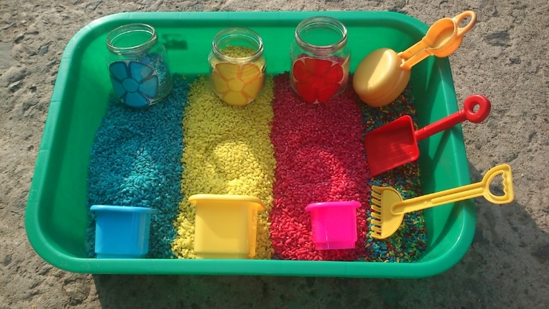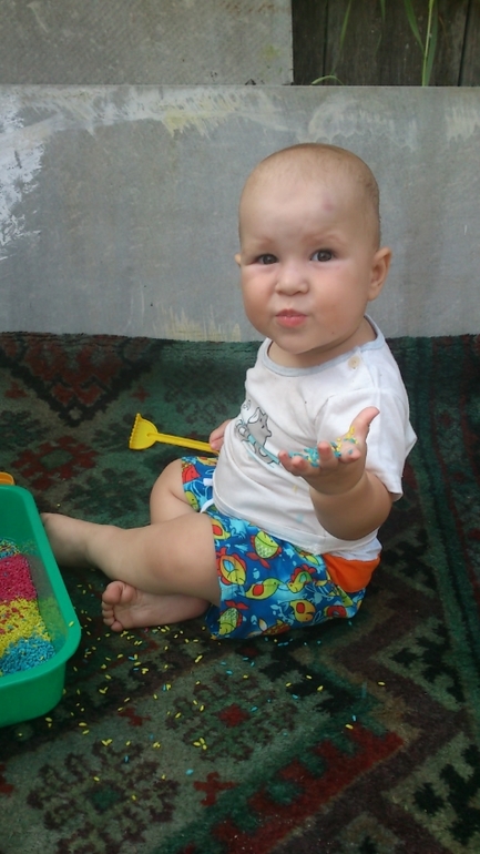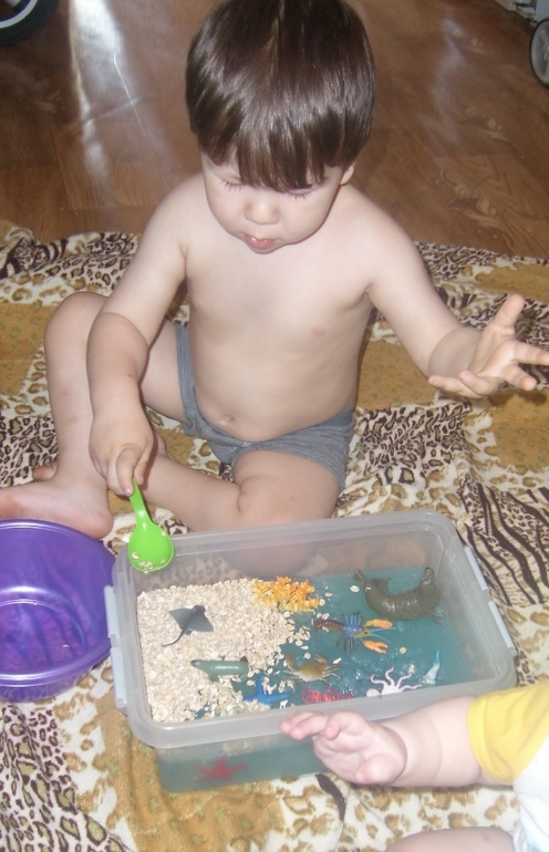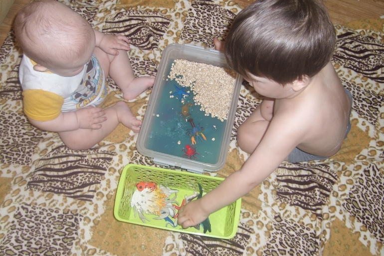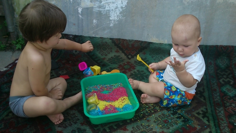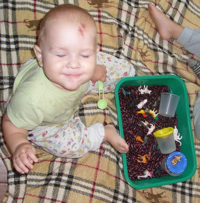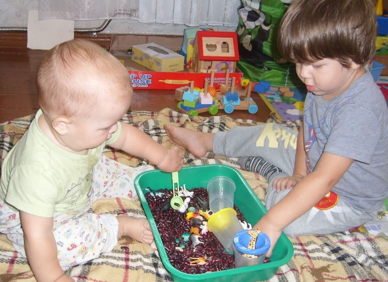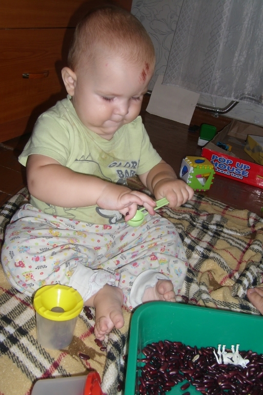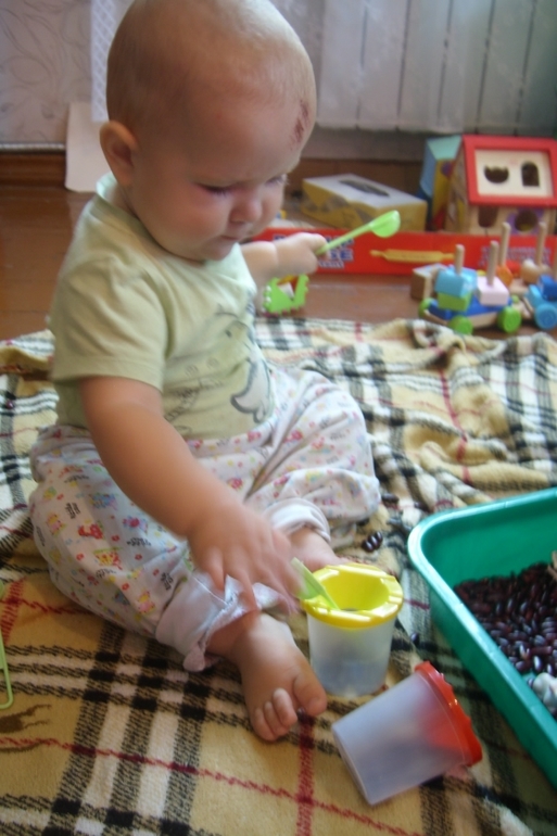 Еще отвлекалочка хорошая. Часто складываем фасолинки в непроливайку, пока мама готовит.