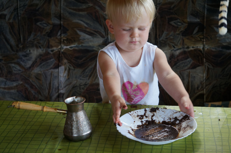 Развитие детей второго года жизниЯ кофеман, но не тот, кто пьет 100 чашек кофе в день, а скорее гурман, который наслаждается одной чашечкой свежезаваренного ароматного напитка...Маша видимо оценила мой полдничный ритуал варки кофе в турке, поэтому с удовольствием, после того, как я ее опустошила, стала играть с кофейной гущей, вдыхать ароматы и просто возюкать, так как игры на сенсорику у нее на данный момент любимые!Вот такое вот увлекательное занятие вышло совершенно случайно, а ведь кофе я пью каждый день!