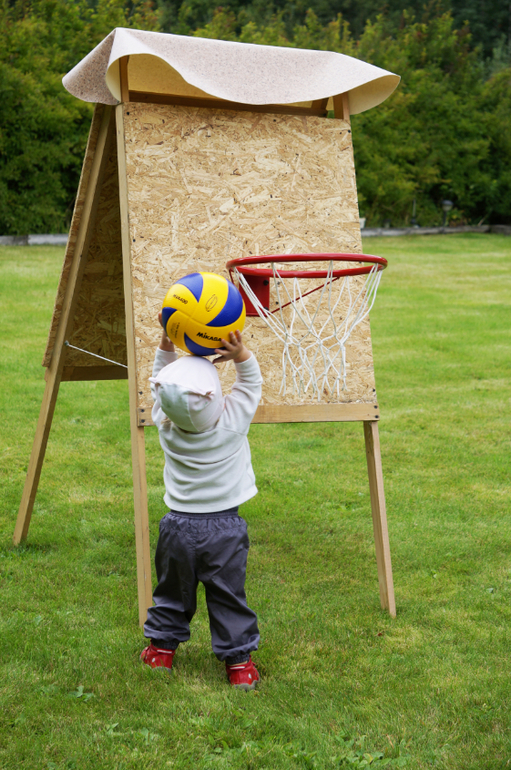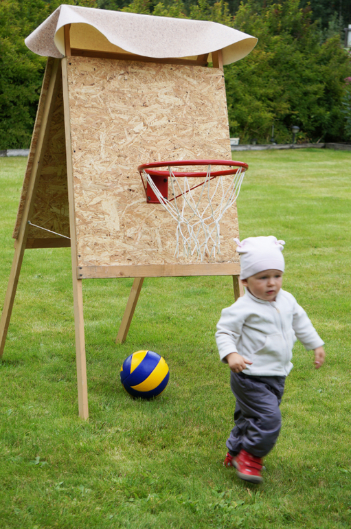 Развитие детей второго года жизниА почему бы не начать учиться играть в баскетбол в раннем детстве? Эта игра развивает координацию, меткость, да и просто хороша для физического развития. Недавно нам дедушка сделал баскетбольное кольцо - самое настоящее, большое, но на низкой подставке типа мольберта, чтобы можно было переносить в нужную зону. Теперь пытаемся попасть...дело-то нелегкое, даже для мамы!