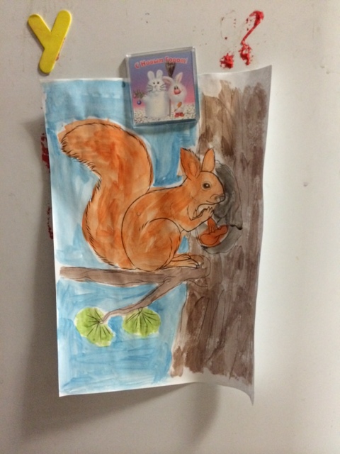 5. Искали желудь за деревьями, но больше все-таки показывает на правую карточку и особо не угадывает, либо хочет сразу две открыть...