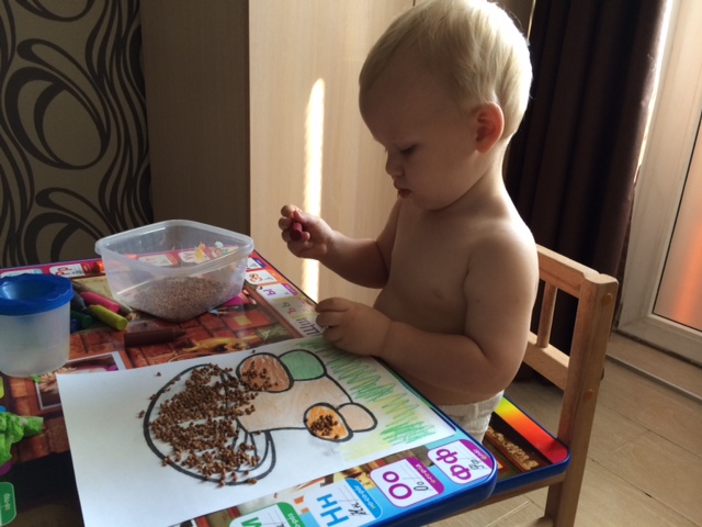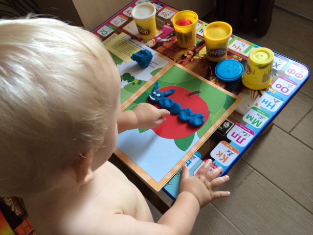 На след.день делали поделки, рисовали и лепили пластилином. Все это мы с Димой делаем частенько и поэтому в рот он уже не тащит ни пластилин, ни краски (ну если только очень-очень вредное настроение, но тогда мы просто переключаемся на что-нибудь другое:).