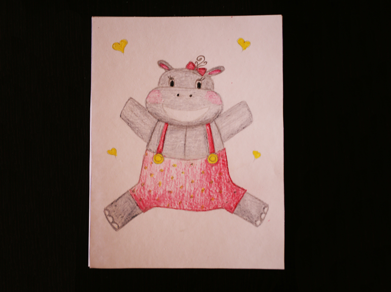 Когда я начала рисовать Бегемотуса, я обнаружила, что у меня дома нет ластика. Поэтому пришлось рисовать стразу начисто)