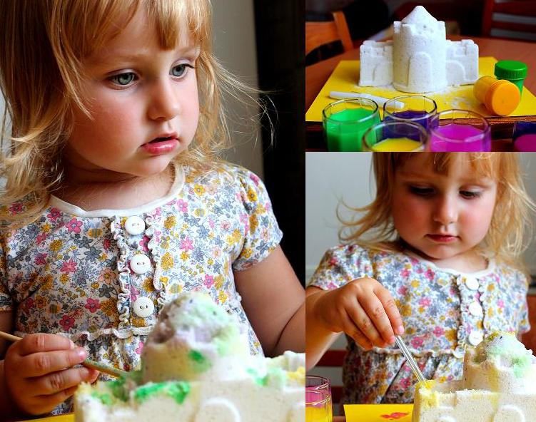 Продолжаем играть и в плохую погоду. Хм, а летом разве бывает плохая погода? Предположим, что на улице гроза))) Строим соляные замки, развивая моторику и воображение. Рецепт прост: 3 стакана мелкой соли и всего 3 чайные ложки воды, не более! Выбираем любую форму, можно замки, можно пирожные, можно транспорт... оставляем застывать на 2 суток. А краски лучше взять поярче, лучше жидкие пищевые или готовую жидкую акварель, и пипеткой создаем узоры на нашей заготовке. К слову, эта красота, может очень долго радовать взгляд в качестве интерьерного украшения.