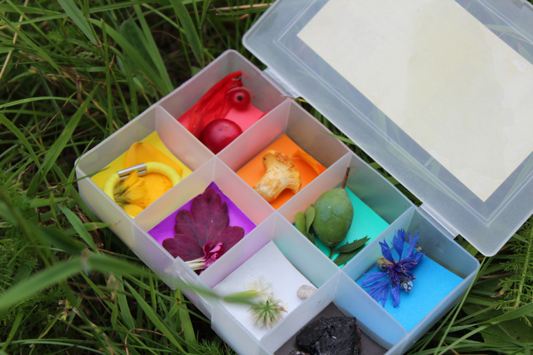 Каждую прогулку стараемся превратить в маленькое увлекательное и нескучное исследование, путешествие или приключение. Например, цвета можно изучать с помощью вот такого цветного сортера.