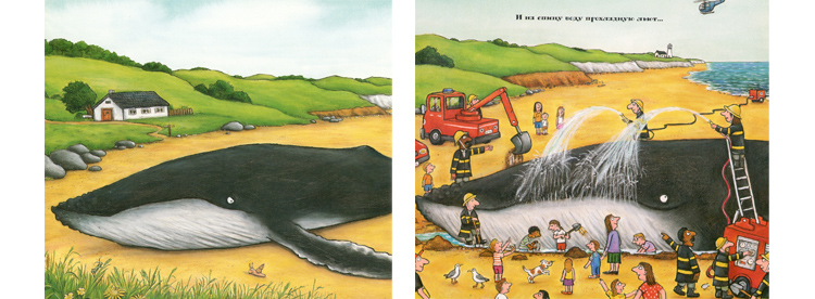Сюжет этой книги прекрасен не только очередным юмористичным исполнением, но и поучительной историей о том, как даже очень маленькое существо может сделать огромное дело, и о том, что даже самое большое создание на планете может нуждаться в помощи и поддержке. Мне нравятся детские книги, после которых есть о чем поговорить с ребенком, когда можно что-то обсудить и не просто "читать мораль", а делать это легко и непринужденно. Это как раз одна из таких книг. Она как-то завораживает. А еще после нее срочно захотелось побеждать в магазин по традиции купить Шляйховского (Schleich) кита, потому что мой ребенок все время носит мне всех животных, которых видит в книги. Так что мы его приобрели ;) Маруся зовет его "Ка")